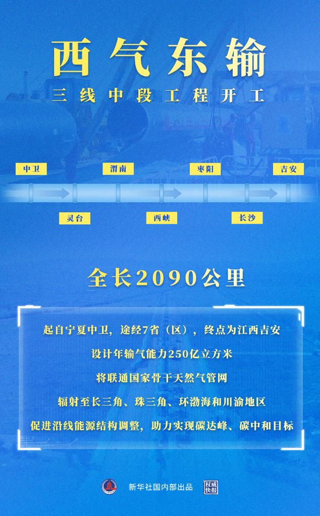 “西氣東輸三線工程是繼西氣東輸一線、二線之后,黨中央、國務院部署的又一項關系國計民生,具有重大政治、經(jīng)濟、社會和環(huán)保意義的國家級重點工程,氣源地為中亞國家和我國西部地區(qū),能夠聯(lián)通國家骨干天然氣管網(wǎng),推動天然氣市場輻射至長三角、珠三角、環(huán)渤海和川渝地區(qū),受益民眾數(shù)以億計。”他說,該項目按照西段、中段和東段三部分分期建設,其中西段(霍爾果斯—中衛(wèi))于2014年8月25日建成投產,東段(吉安—福州)于2016年12月12日竣工通氣。