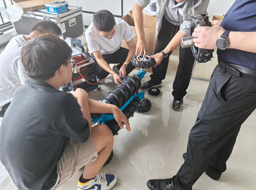 在監測能力上,機器人搭載的360°旋轉云臺高清攝像機可實現數字高清成像,既能遠距離捕捉水面漂浮物、非法排污口等顯性污染問題,也能清晰記錄管渠內部裂縫、積淤等隱蔽隱患,為水質溯源提供精準影像數據。臨汾市生態環境局水生態環境科負責人表示:"過去對汾河支流管渠的排查需要人員涉水作業,不僅效率低,還存在安全風險。現在機器人能深入這些危險區域,讓監管觸角延伸到每一個關鍵節點。"