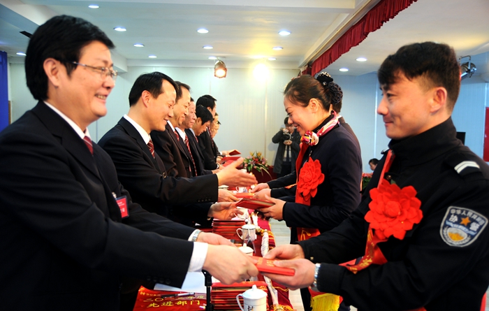 大會(huì)在雄壯的《國(guó)歌》和《華億之歌》的樂(lè)曲聲中開幕。根據(jù)大會(huì)議程安排,集團(tuán)副總裁張靖宣讀了2013年度表彰先進(jìn)的決定,主席臺(tái)上的領(lǐng)導(dǎo)分別為獲獎(jiǎng)先進(jìn)個(gè)人、先進(jìn)部門、先進(jìn)集體、勞動(dòng)標(biāo)兵、優(yōu)秀管理者、華億超市優(yōu)秀示范店頒獎(jiǎng)。獲獎(jiǎng)個(gè)人和集體代表先后上臺(tái)發(fā)言。之后,集團(tuán)總裁項(xiàng)領(lǐng)分別與華億國(guó)際、華億置業(yè)、偉晨文化、華億城市生活廣場(chǎng)、華億超市五家二級(jí)公司,現(xiàn)場(chǎng)簽訂了《2014年經(jīng)營(yíng)管理目標(biāo)責(zé)任書》和《安全生產(chǎn)目標(biāo)責(zé)任書》,各公司負(fù)責(zé)人簽字后分別發(fā)言,表示在集團(tuán)的正確領(lǐng)導(dǎo)下,對(duì)完成全年目標(biāo)任務(wù)充滿了信心。