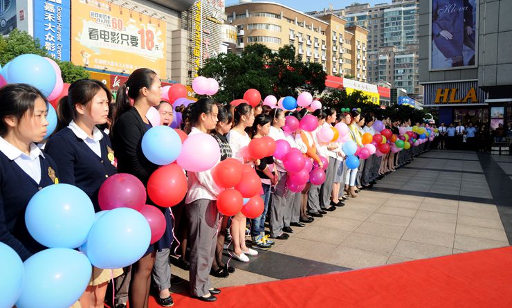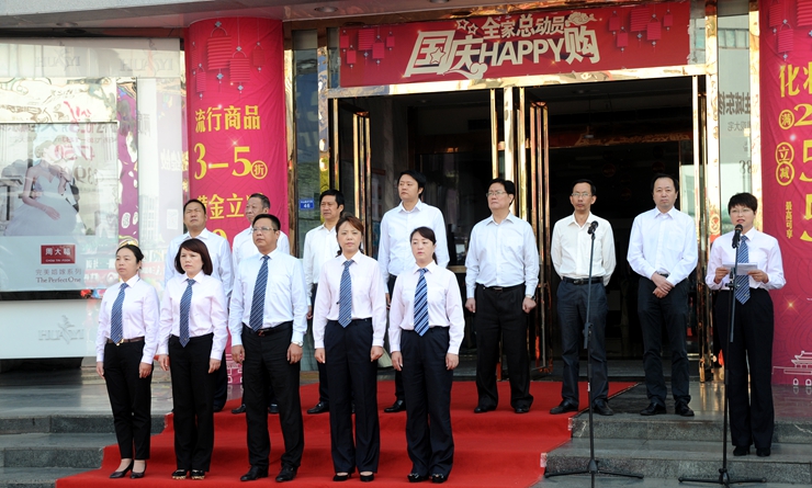 今天蕪湖的天空格外晴朗,千余名華億員工身著整齊的服裝,手持五彩氣球,在華億廣場(chǎng)上整齊列隊(duì),千余只和平白鴿在華億廣場(chǎng)等待放飛。上午8:45分,升旗儀式正式開(kāi)始,在華億軍樂(lè)隊(duì)演奏的莊嚴(yán)國(guó)歌聲中,五星紅旗和華億集團(tuán)司旗緩緩升起。隨后,華億集團(tuán)總裁項(xiàng)領(lǐng)發(fā)表講話(huà)。他表示,進(jìn)入2014年以來(lái),集團(tuán)在業(yè)態(tài)豐富、品牌創(chuàng)新、對(duì)外連鎖等方面,快速推進(jìn),成就斐然。在項(xiàng)目業(yè)態(tài)上,創(chuàng)出“華億城市生活廣場(chǎng)-現(xiàn)代社區(qū)新型服務(wù)綜合體”的概念,短短9個(gè)月,融匯錦江、長(zhǎng)江長(zhǎng)、徽商春天、凱帆大廈等四家華億生活超市社區(qū)店相繼開(kāi)業(yè),繁昌、星隆兩家大型生活超市正在籌建之中。與此同時(shí),阜陽(yáng)華億國(guó)際購(gòu)物中心、繁昌華億廣場(chǎng)、華億國(guó)際星隆店“三箭齊發(fā)”、同步推進(jìn)。在經(jīng)營(yíng)上,華億國(guó)際購(gòu)物中心銷(xiāo)量穩(wěn)步提升,特別是剛剛結(jié)束的一年一度的“大搶節(jié)”活動(dòng),創(chuàng)下了銷(xiāo)售額翻番的成績(jī)。華億環(huán)球影城市場(chǎng)份額穩(wěn)居蕪湖首位,占據(jù)了全市票房的半壁江山。華億集團(tuán)取得的每一點(diǎn)成績(jī),都與我們國(guó)家的政通人和、繁榮富強(qiáng)、深化改革和擴(kuò)大開(kāi)放的宏觀(guān)環(huán)境密不可分。今天,在這里舉行升國(guó)旗儀式,就是要感謝偉大的祖國(guó),感謝偉大的黨,感謝偉大的人民,進(jìn)一步弘揚(yáng)愛(ài)國(guó)主義、集體主義精神,弘揚(yáng)社會(huì)主義核心價(jià)值觀(guān),把滿(mǎn)腔愛(ài)國(guó)之情化作推進(jìn)企業(yè)發(fā)展的精神動(dòng)力,把華億集團(tuán)的各項(xiàng)事業(yè)推向新的高度。