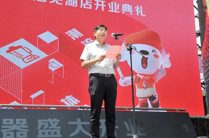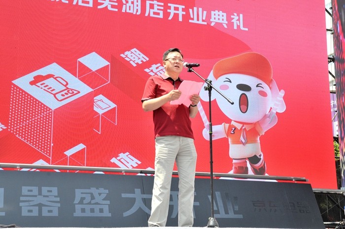 領(lǐng)導(dǎo)共同為京東電器城市旗艦店蕪湖店啟動(dòng)推桿