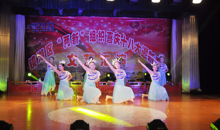 12月27日下午,鏡湖區(qū)工商聯(lián)、兩新黨工委主辦的兩新組織"喜慶十八大迎新春文藝匯演"在區(qū)大禮堂隆重舉辦。鏡湖區(qū)四大班子主要領(lǐng)導(dǎo)、區(qū)直各部門及區(qū)"兩新"組織400余人觀看了演出。其中由華億集團(tuán)黨委選送、團(tuán)委組織的舞蹈節(jié)目“美麗的心情” 在16支隊伍中獲得二等獎的佳績。華億藝術(shù)團(tuán)的姑娘們演出中精彩的表演和華麗的場景,給觀眾送上了一道美妙的視覺盛宴,也展示了華億人良好的精神風(fēng)貌。