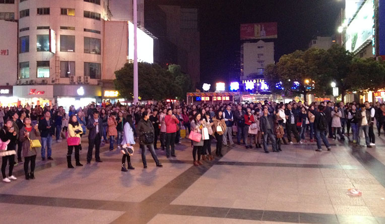 此次“微信萬人搖一搖”活動共進(jìn)行了五次,從晚上6點(diǎn)開始到8點(diǎn)結(jié)束,每半小時(shí)進(jìn)行一次。雖然當(dāng)時(shí)的天空下起了小雨,但依然沒有擋住觀眾的熱情,逛街的行人還不時(shí)地加入到搖微信的大軍中。