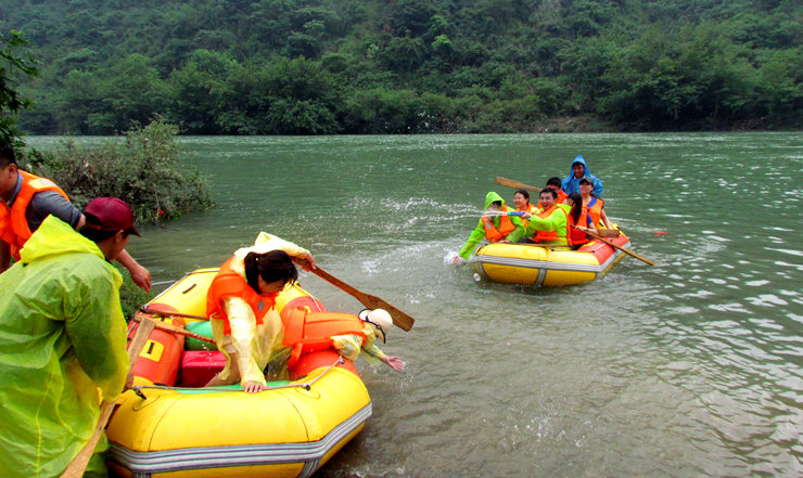 早上7時,大巴車準時出發,途中導游通過豐富多彩的互動游戲讓枯燥的車程變得趣味十足。水系環繞,綠意盎然,不知不覺就到達了目的地。在縱情游覽池州齊山風景區,品嘗了地道的秋浦美味后,激動人心的漂流活動正式開始。本次激情皮筏漂流全程長2500米,漂流時間約60分鐘,所有影迷身著紅色救生衣,五人一組,坐上了橡皮舟,向峽谷激流進發。一時間,山谷里尖叫聲、歡笑聲,槳與水的擊打聲,組成了歡樂的交響樂。