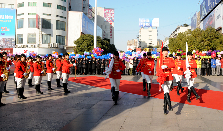 上午8:30,華億國際員工代表手持彩色氣球,肅立在步行街華億國際A座門前廣場,華億女子軍鼓樂隊、升旗隊精神昂揚,市民翹首觀禮。8時58分,主持人宣布慶典活動正式開始。在莊嚴的國歌聲中,五星紅旗和華億集團司旗緩緩升起。隨后,華億國際總經(jīng)理張樹華發(fā)表店慶賀辭。他表示,2014年,在全體員工的努力下,華億國際取得了一定的業(yè)績,保質(zhì)保量完成2014年各項經(jīng)營指標的同時,在對外連鎖拓展方面取得了進展,阜陽華億國際、繁昌華億國際將于2015年年初開業(yè)。新的一年里,華億國際將繼續(xù)發(fā)揚奮勇拼搏的精神,以最優(yōu)質(zhì)的商品和服務回饋顧客,為蕪湖商業(yè)的繁榮做出應有的貢獻。
