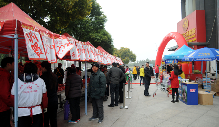 1月16日、22日,華億生活超市長(zhǎng)江長(zhǎng)店、融匯錦江店相繼超市門前廣場(chǎng)舉辦了開業(yè)一周年慶典活動(dòng)。活動(dòng)現(xiàn)場(chǎng),年貨大禮包、蒙城黃牛肉、南陵黑豬肉、東北大米等特色定制商品深受社區(qū)居民歡迎。