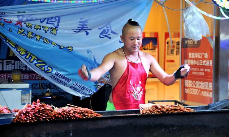 傍晚,繁昌華億廣場一側(cè),近30家美食攤點整齊有序的相對排開,宛如一條嶄新的美食街。炭烤新西蘭牛排、紅燒小龍蝦、重慶酸辣粉、湖南臭豆腐,泰國昆蟲等美食,品種豐富、健康衛(wèi)生,吸引了繁昌縣城鄉(xiāng)鎮(zhèn)市民紛紛趕來。在美食藝人盡情的演繹下,各式各樣的美食變得更加誘人,市民爭相品嘗。不少美食攤主在烹飪美食的過程中,加入歌唱、舞蹈等即興表演,現(xiàn)場的氣氛十分熱鬧。在廣場美食街的入口處,繁昌華億廣場準備了免費啤酒,每位到場的市民可以領取一瓶。
