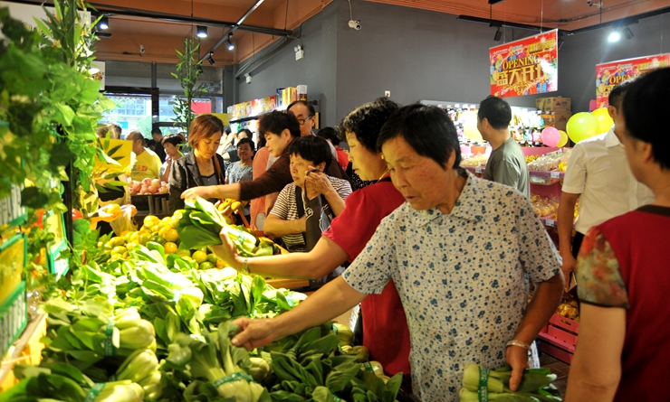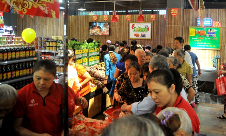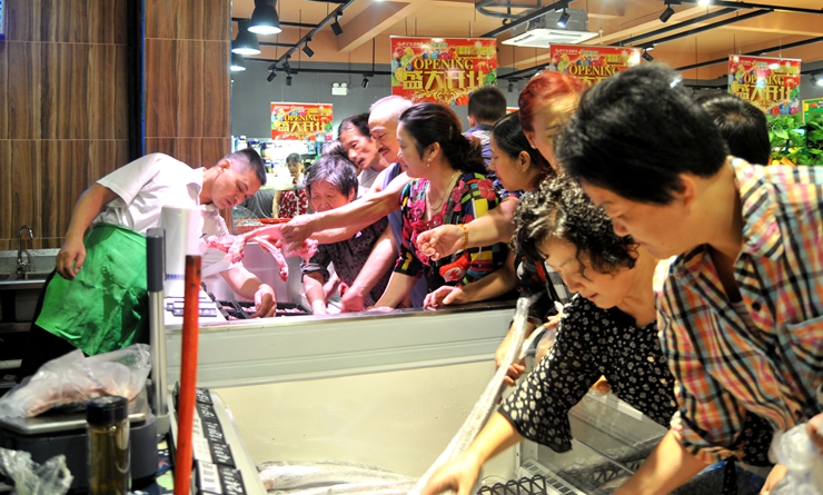 早上7時(shí)58分,在華億管樂隊(duì)演奏的喜慶樂曲聲中,開業(yè)剪彩儀式正式開始,張靖副總裁等領(lǐng)導(dǎo)為樂鮮生活儒林西苑店開業(yè)剪彩。簡短的開業(yè)儀式后,等候在店外的數(shù)百名居民涌進(jìn)超市,新鮮便宜的生鮮產(chǎn)品,干凈舒適的購物環(huán)境,讓消費(fèi)者贊不絕口。超市的過道、地堆前擠滿了選購商品的消費(fèi)者。一位大媽一邊挑選新鮮蔬菜,一邊說道,“華億超市的蔬菜比其他菜市場便宜不少,菜很新鮮干凈。”鮮肉區(qū)肉品價(jià)格便宜、品相好,成為消費(fèi)者搶購的熱銷商品。開業(yè)當(dāng)天,每個(gè)貨架旁都安排了專職工作人員及時(shí)補(bǔ)貨,為確保貨品充足。