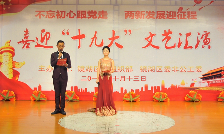 10月13日下午,鏡湖區(qū)“不忘初心跟黨走 兩新發(fā)展迎征程”——喜迎'十九大'文藝匯演在區(qū)政府大禮堂舉行。華億舞蹈團(tuán)應(yīng)邀參加演出,表演的開(kāi)場(chǎng)舞《美麗中國(guó)走起來(lái)》引起觀眾陣陣喝彩。