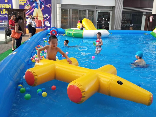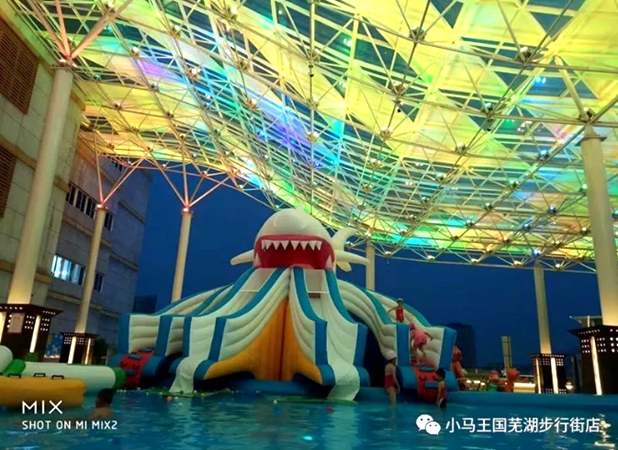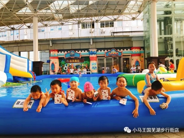 水上樂園位于華億國際購物中心步行街店三樓連廊中間位置,面積近200平米,天橋東西通透,設有頂棚,小朋友們享受室外戲水的同時,免遭烈日的烤曬。小馬王國水上樂園商品零售區(qū)同步上架泳衣、水槍、泳圈等親水道具,物優(yōu)價廉,方便購買。