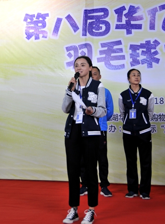 本屆大賽在國際會展中心鼎弘羽毛球館舉行,華億國際副總經理、旗艦店店總王萍,華億置業(yè)公司副總經理黃常青,蕪湖市羽毛球協(xié)會副主席吳容宇,秘書長胡瑞清,副秘書長宣艷出席開幕式。王萍副總經理代表大賽主辦單位致辭并宣布大賽開幕。