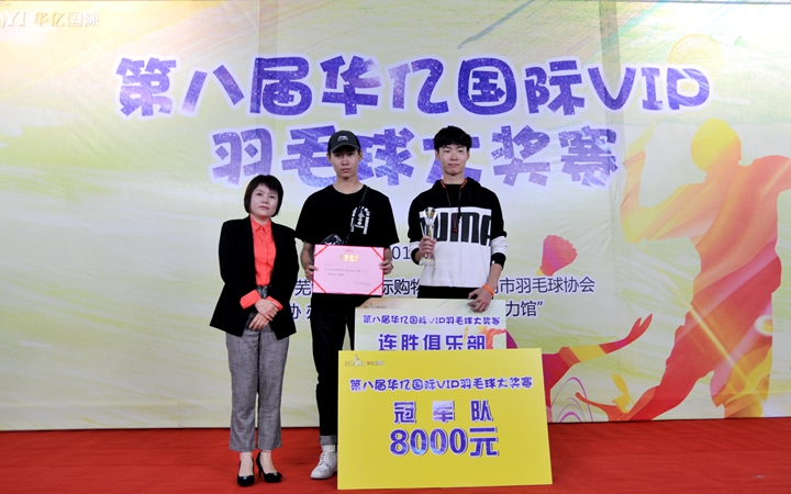 10月28日,第八屆華億國際VIP羽毛球大獎賽落下帷幕。經過一天半的角逐,最終,連勝隊獲得本次大賽冠軍,泓科俱樂部獲得亞軍,蕪湖星宇隊和奕天體育隊并列第三名,友誼隊和羽樂行三隊并列第五,自由樂羽隊和鑫家匯羽毛球隊并列第七,羽樂行五隊獲得最佳組織獎,無為天羽一隊獲得最佳道德風尚獎。