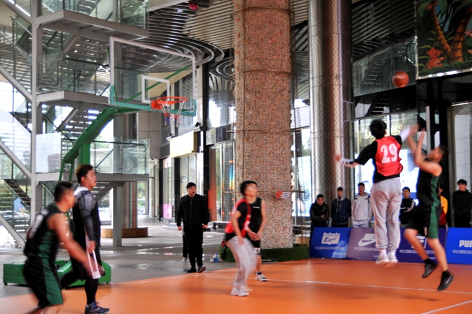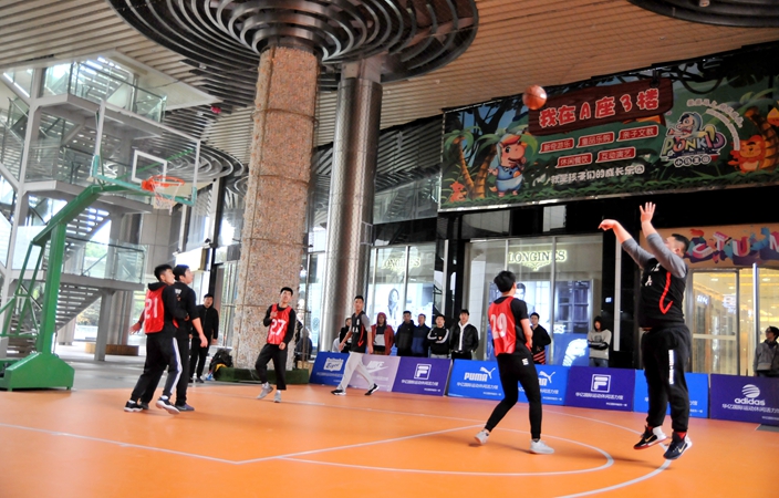 17日上午,本屆3V3籃球賽在華億國際AB座連廊天橋下舉行,華億國際副總經(jīng)理楊艷菁女士、華億國際大客戶部經(jīng)理張曉華、華億國際運(yùn)動商場經(jīng)理柳靜出席開幕式。楊艷菁副總經(jīng)理代表大賽主辦單位致辭并宣布大賽開幕。
