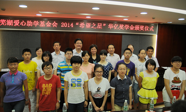 8月9日上午,蕪湖市愛心助學(xué)基金會2014年度“希望之星”華億獎學(xué)金頒獎儀式舉行。13位在今年中、高考中取得優(yōu)異成績的學(xué)生及... -