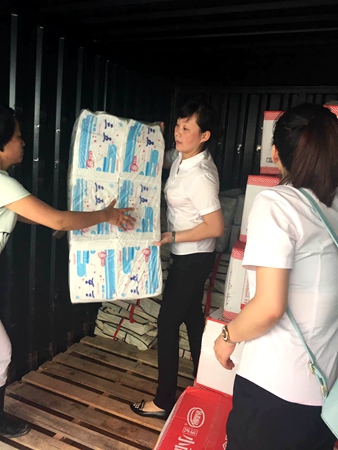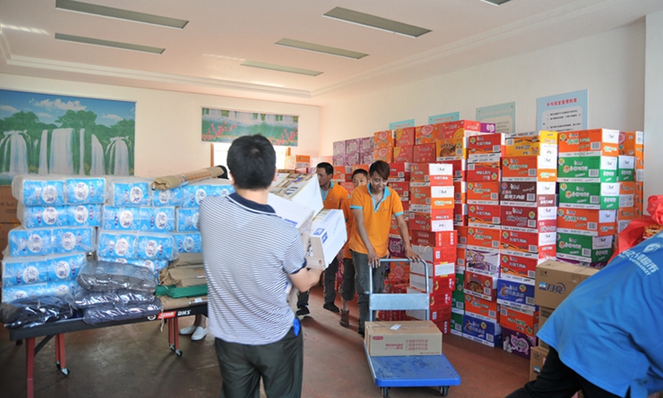 最終,經(jīng)過兩個多小時的艱難行車,我們成功抵達平鋪鎮(zhèn)漳河大堤災區(qū)物資接收點,將一車棉被、手電筒、牛奶、衛(wèi)生紙、礦泉水等災區(qū)緊缺物資安全送達工作人員的手中。