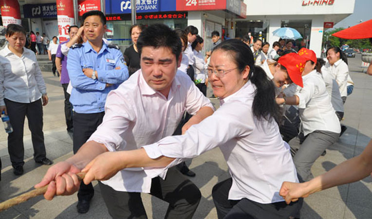 比賽的哨聲一響起,各隊(duì)隊(duì)員們雙手緊握長繩,憋足了勁拼命往后拉,他們的“粉絲們”自發(fā)組成啦啦隊(duì),口中一起高呼著“加油,加油”為各個(gè)隊(duì)伍加油鼓勁。號(hào)子聲、吶喊聲,此起彼伏,飄蕩在華億國際的上空。歡騰的場面,感染了步行街上的眾多行人,商場的顧客朋友也紛紛出來駐足觀看,現(xiàn)場感受華億國際的文化氛圍。整場比賽氣氛熱烈,秩序井然,展示了良好的組織能力和水平。經(jīng)過激烈的較量,最終運(yùn)動(dòng)休閑部獲得冠軍,后勤機(jī)關(guān)隊(duì)獲得亞軍,皮鞋皮具部獲得季軍,珠寶、化妝、床品兒用、男裝、女裝五隊(duì)得到了優(yōu)勝獎(jiǎng).